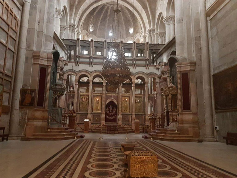 Στο εσωτερικό του μεγάλου ναού, ομάδες πιστών και προσκυνητές περιφέρονται, προσεύχονται, ανάβουν κεριά για να εκφράσουν τον θρησκευτικό τους ζήλο. Οι διαφορές μεταξύ των τελετουργικών, των ρευμάτων και των προελεύσεων ξεθωριάζουν ενώ το θρησκευτικό αίσθημα που μοιράζονται πλημμυρίζει τους προσκυνητές σε κάθε γωνιά του Ναού.