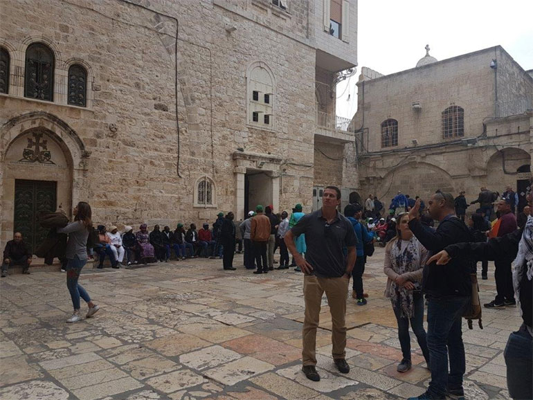 Μία μετά την άλλη οι ομάδες των προσκυνητών από κάθε γωνιά του κόσμου, ακολουθώντας τους ξεναγούς τους, κατευθύνονταν προς την Παλιά Πόλη και διασχίζοντας τα στενά σοκάκια μεταξύ των καταστημάτων, κατέληγαν στον πρόσφατα και εντυπωσιακά ανακαινισμένο Ιερό Ναό του Παναγίου Τάφου.