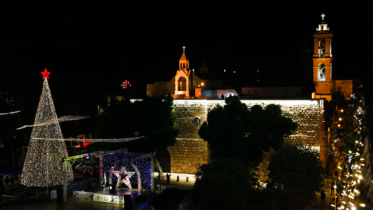 Παλαιστίνιοι και πιστοί συγκεντρώνονται παραδοσιακά κάθε χρόνο κατά την έναρξη των εορτασμών των Χριστουγέννων στην Πλατεία της Φάτνης κοντά στον Ναό της Γέννησης, τόπος γέννησης του Ιησού Χριστού σύμφωνα με την παράδοση, για να παρακολουθήσουν τη φωταγώγηση του δέντρου.