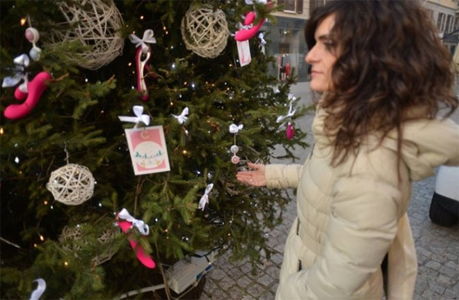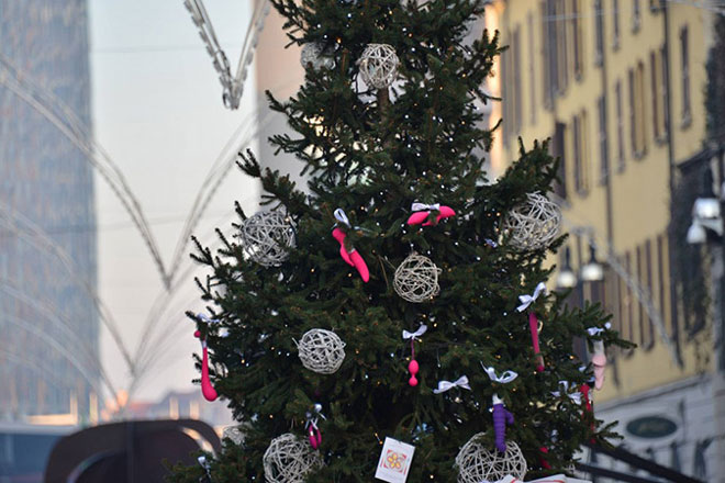 Το δέντρο αντί για τις παραδοσιακές χριστουγεννιάτικες μπάλες, έφερε διαφόρων ειδών sex toys, όπως για παράδειγμα 100 πολύχρωμους δονητές.