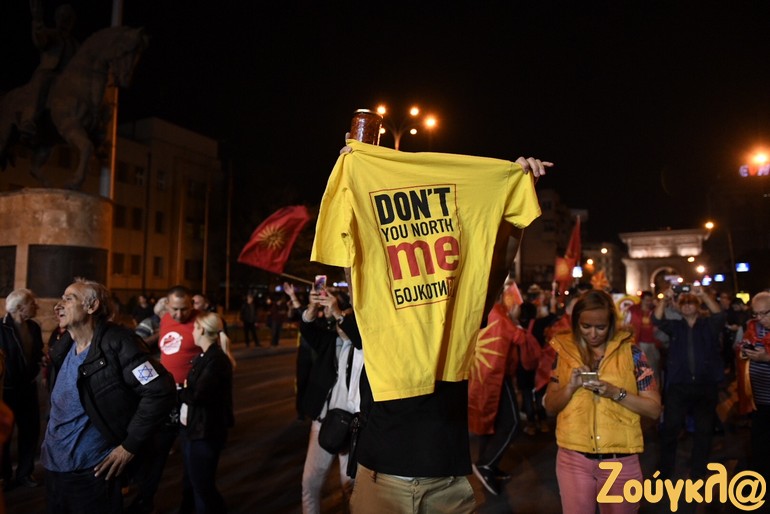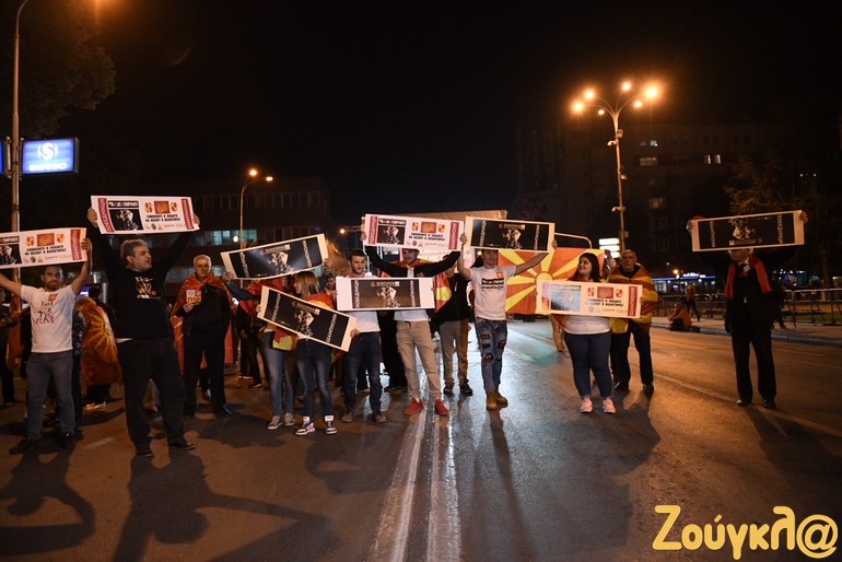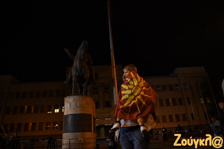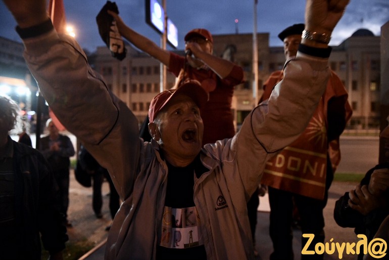 Το δικό τους γλέντι έχουν στήσει έξω από το κοινοβούλιο της ΠΓΔΜ οι οπαδοί του «ΟΧΙ»