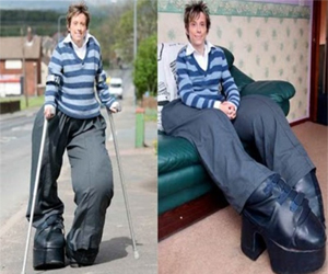 «Όπως μπορείτε να φανταστείτε το μέγεθος των ποδιών μου, κάνουν το περπάτημα δύσκολο και χρειάζονται δεκανίκια για να σταθώ όρθια. Χρησιμοποιώ ένα ηλεκτρικό αναπηρικό καροτσάκι, όταν πάω έξω».