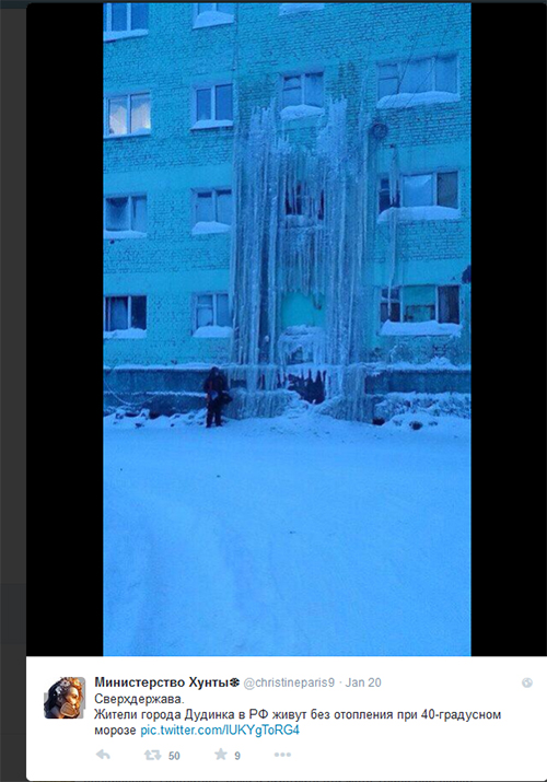 Εικόνες… αποκάλυψης στην πόλη της Dudinka στη Σιβηρία, όπου μία πανίσχυρη καταιγίδα, σε συνδυασμό με τις πολικές θερμοκρασίες των μείον 40 βαθμών Κελσίου που επικρατούν, μετέτρεψαν την πόλη σε… παγόβουνο, παγιδεύοντας τους 22.000 κατοίκους, οι οποίοι κατέφυγαν ακόμη και στα κοινωνικά δίκτυα, για να ζητήσουν βοήθεια.