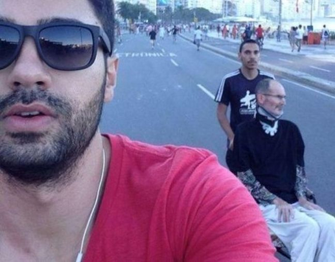 Δεν πίστευε στα μάτια του όταν κοίταξε τη selfie που έβγαλε ένας νεαρός στο Ρίο ντε Τζανέιρο, αφού δίπλα του είχε απαθανατιστεί ένας άνδρας που παρουσιάζει τρομακτική ομοιότητα με τον Στιβ Τζομπς. Ο άνδρας βρίσκεται σε αναπηρικό αμαξίδιο και πυροδότησε θεωρίες συνομωσίας και σενάρια επί σεναρίων.