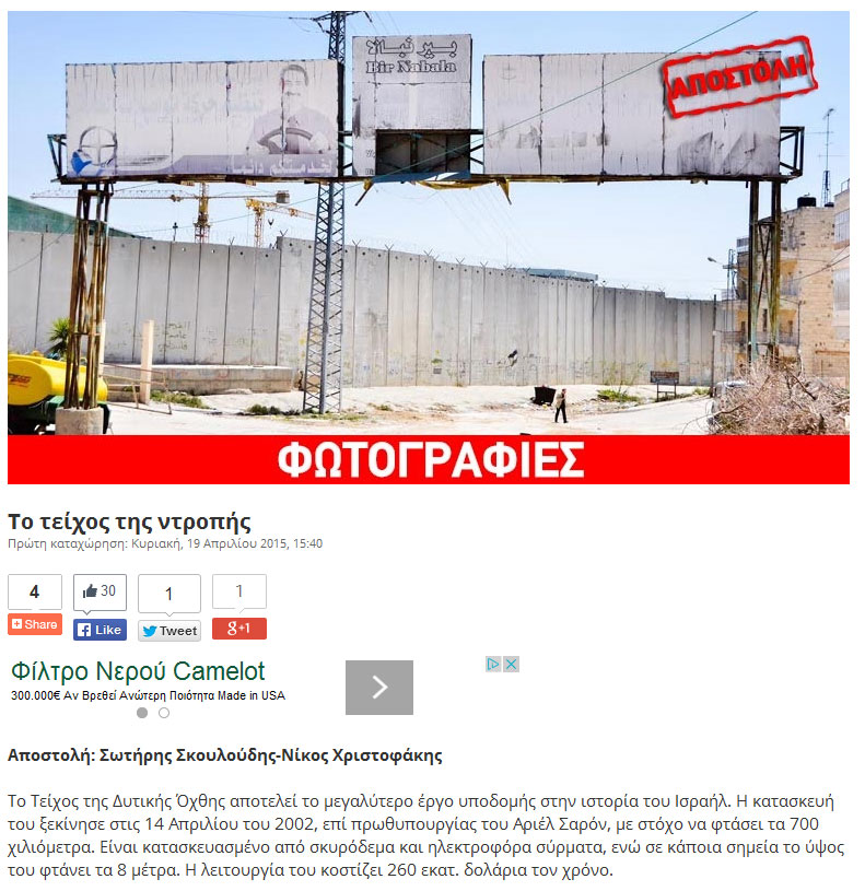 Ένα χαμόγελο, μια φιλική χειρονομία και η ζωή συνεχίζεται παρά τις αντιξοότητες και το τείχος της ντροπής, το οποίο -σύμφωνα με τους Παλαιστίνιους- αποτελεί εμπόδιο για τη δημιουργία ενός βιώσιμου κράτους καθώς δημιουργεί εδαφικό status quo υπέρ του Ισραήλ, περιορίζοντας και απομονώνοντας τις κοινότητές τους.
