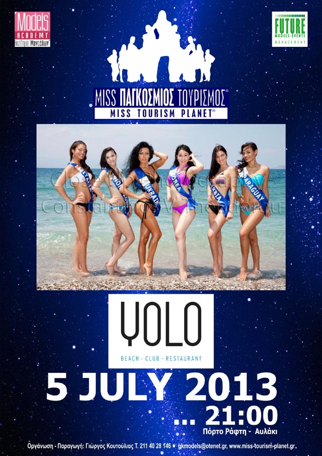 Στις 5 Ιουλίου θα διοργανωθεί στο YOLO beach bar restaurant στο Πόρτο Ράφτη ο Παγκόσμιος Διαγωνισμός Ομορφιάς & Τουρισμού 17ος MISS ΠΑΓΚΟΣΜΙΟΣ ΤΟΥΡΙΣΜΟΣ.