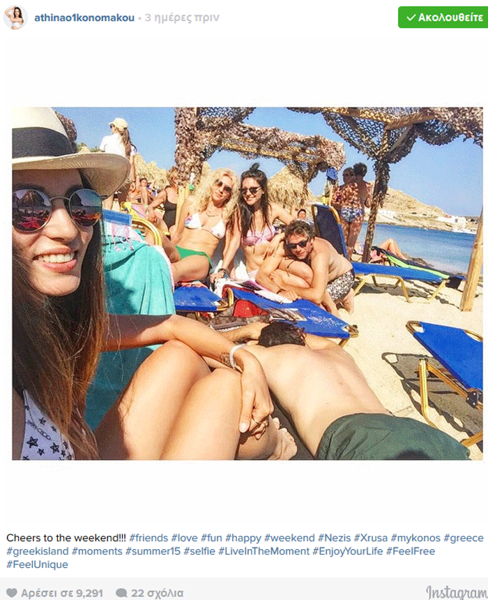 Που τη βρίσκεις που τη χάνεις την Αθηνά Οικονομάκου στη Μύκονο θα τη βρεις. Η όμορφη ηθοποιός που επισκέπτεται συχνά πυκνά το νησί των ανέμων λόγω του συντρόφου της που δραστηριοποιείται επιχειρηματικά στο νησί, βρέθηκε και το τριήμερο του Αγίου Πνεύματος εκεί και μέσω του instagram μας έδειξε πως πέρασε.