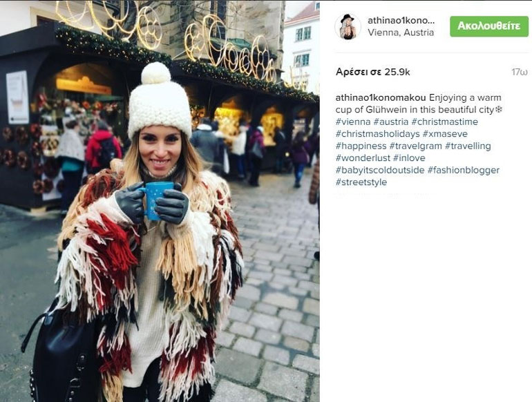 Χριστούγεννα στην μαγική Βιέννη απολαμβάνει η Αθηνά Οικονομάκου μαζί με τον σύντροφό της Φίλιππο Μιχόπουλο.