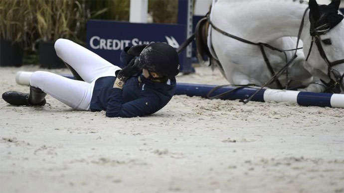 Από θαύμα σώθηκε η εγγονή του Αριστοτέλη Ωνάση, Αθηνά Ωνάση, η οποία είχε ένα ατύχημα κατά τη διάρκεια του διαγωνισμού για την 54η διεθνή επίδειξη υπερπήδησης εμποδίων με άλογα στη Γενεύη της Ελβετίας.