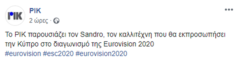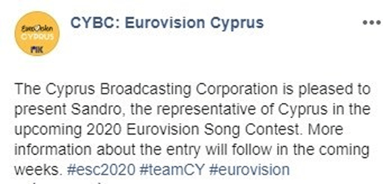 Πριν από λίγες ώρες η Δημόσια Τηλεόραση της Κύπρου (ΡΙΚ) ανακοίνωσε τον τραγουδιστή που θα εκπροσωπήσει την χώρα το 2020.