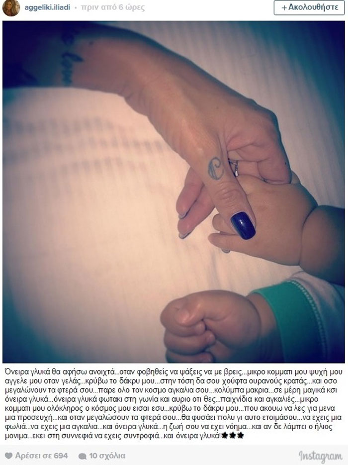 Η Αγγελική Ηλιάδη μέσω του λογαριασμού της στο instagram ανέβασε μια τρυφερή φωτογραφία με το μικρό χεράκι του γιου της, Βασίλη και έγραψε μοιράστηκε με τους followers της όλα όσα νιώθει.