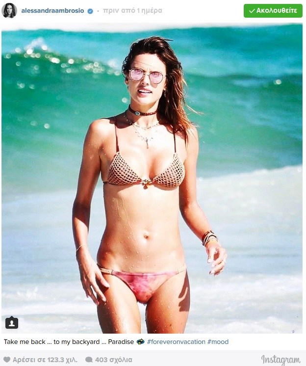 Το διασημότερο «αγγελάκι» της Victoria’s Secret νοσταλγεί, όπως φαίνεται, το καλοκαίρι! Η Alessandra Ambrosio μοιράστηκε, λοιπόν, με τους εκατομμύρια followers της στο Ιnstagram μια καλοκαιρινή της φωτογραφία και κατέγραψε τη σκέψη της: «Πήγαινέ με πίσω, στην αυλή μου, στον Παράδεισο».