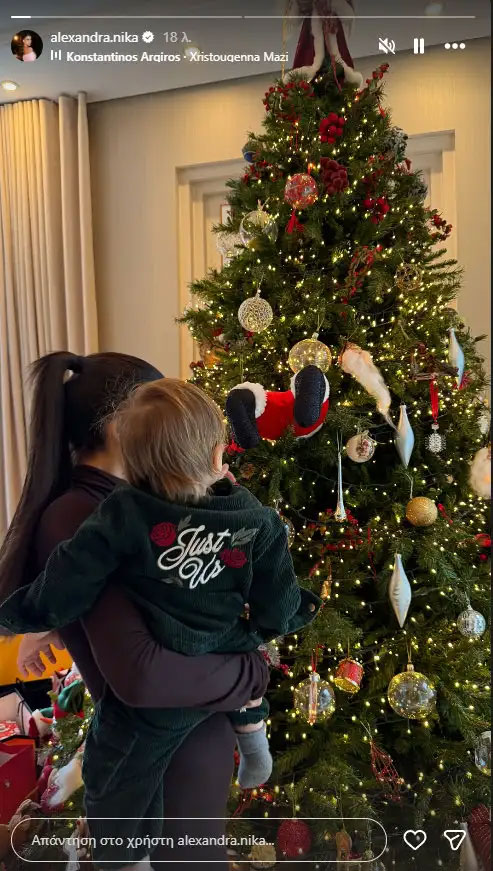 Στον λογαριασμό της στο Instagram μοιράστηκε δύο τρυφερά στιγμιότυπα: το πρώτο μπροστά από το χριστουγεννιάτικο δέντρο και το δεύτερο με την παραδοσιακή πρωτοχρονιάτικη πίτα, δίνοντας μια γεύση από τις ζεστές οικογενειακές στιγμές τους.