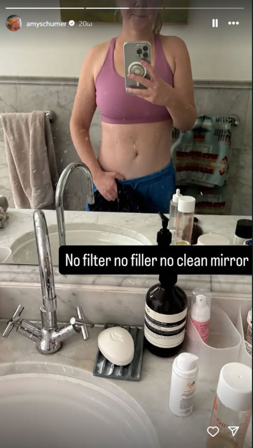 «Χωρίς φίλτρο, χωρίς filler, χωρίς καθαρό καθρέφτη», σχολίασε με χιούμορ η Amy Schumer.