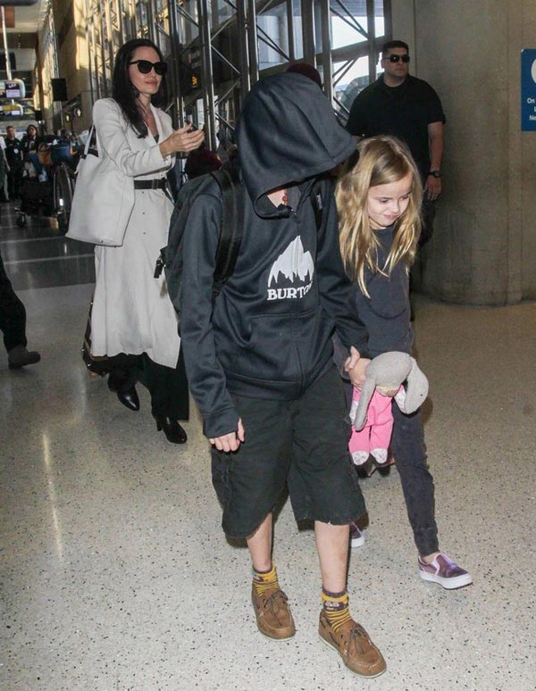 Στο αεροδρόμιο του Λος Άντζελες εντόπισε ο φωτογραφικός φακός την Angelina Jolie μαζί με τα έξι παιδιά της (τα τρία που είναι υιοθετημένα και τα τρία βιολογικά της).