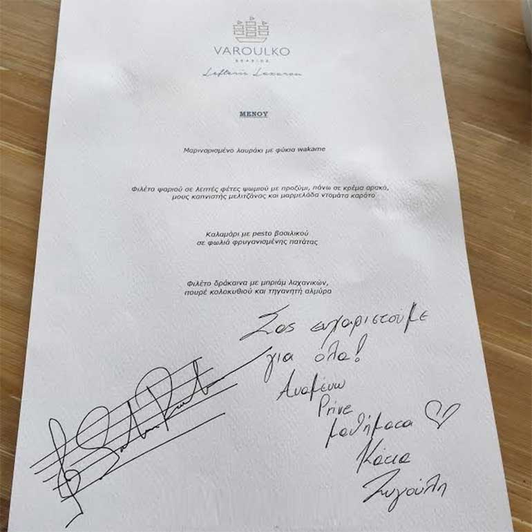 Πριν από λίγες μέρες το όμορφο ζευγάρι έφαγε θαλασσινές νοστιμιές στο εστιατόριο του Λευτέρη Λαζάρου, ενώ τους ευχαρίστησε όλους για το εξαιρετικό μενού και την φροντίδα του.