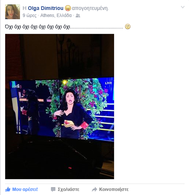 Η Όλγα Δημητρίου δήλωσε απογοητευμένη όταν είδε την Αποστολία Ζώη να υποδύεται τη μητέρα της και να τραγουδά το «Εξαιρούνται» στη σκηνή του σόου.