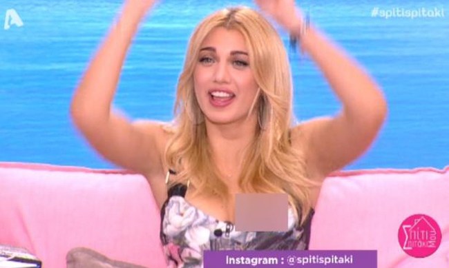 Μια άτυχη στιγμή είχε η Κωνσταντίνα Σπυροπούλου στον αέρα της εκπομπής Σπίτι μου Σπιτάκι μου, μιας και κατά λάθος αποκάλυψε το στήθος της.