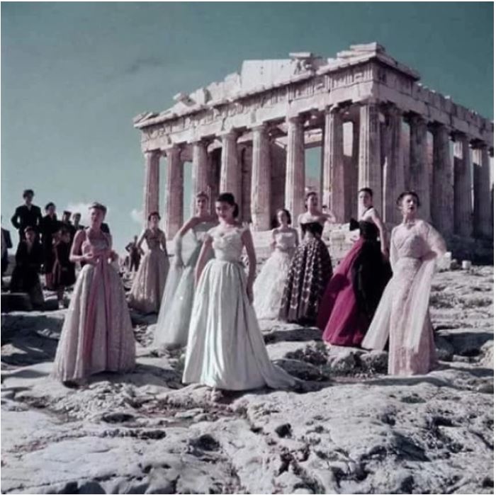 Το 1951 ο οίκος Dior έκανε φωτογράφιση στην Ακρόπολη για λογαριασμό του περιοδικού Paris Match. Τα μοντέλα πόζαραν για τον φακό του σπουδαίου φωτογράφου Jean Pierre Pedrazzini, ο οποίος σκοτώθηκε πέντε χρόνια αργότερα ενώ κάλυπτε τα αιματηρά γεγονότα του 1956 στην Ουγγαρία. Η φωτογράφιση εκείνη είχε προκαλέσει πλήθος αντιδράσεων στην Ελλάδα, κάτι που συνεχίστηκε και τα επόμενα χρόνια σε αντίστοιχες απόπειρες.