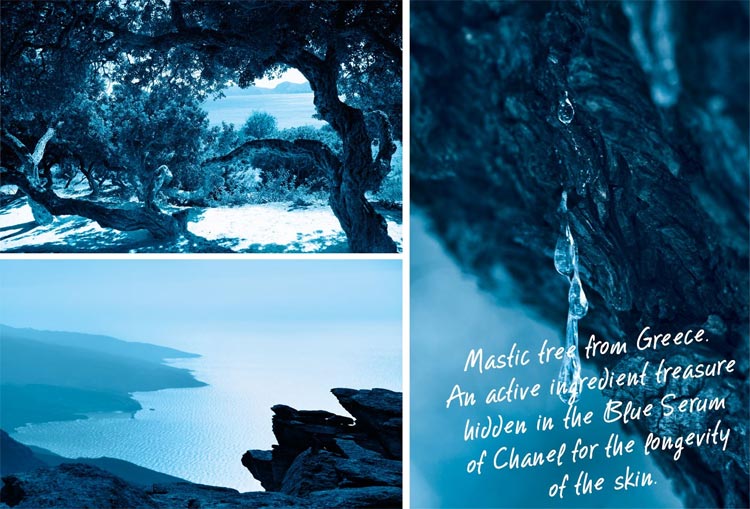 Έτσι, για τη σύνθεσή του, τα συστατικά που χρησιμοποίησαν είναι ο πράσινος καφές από την Κόστα Ρίκα, οι ελιές από τη Σαρδηνία και το μαστιχόδεντρο από τη χώρα μας, στην οποία αφιέρωσαν και ένα από τα βίντεο για το λανσάρισμα του Blue Serum.