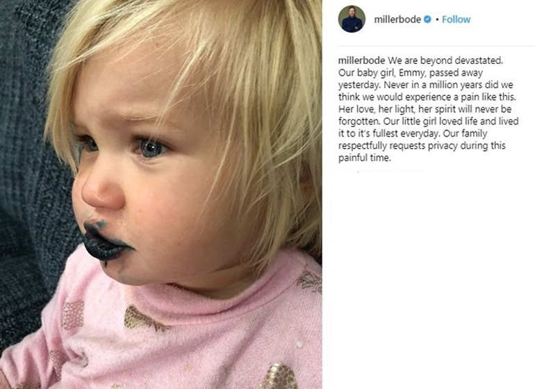 Δύσκολες στιγμές για τον Ολυμπιονίκη Bode Miller και τη σύζυγό του Morgan, καθώς λίγους μήνες πριν υποδεχτούν το νέο μέλος στην οικογένειά τους, έφυγε από τη ζωή η 19 μηνών κορούλα τους.