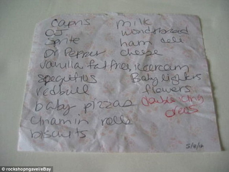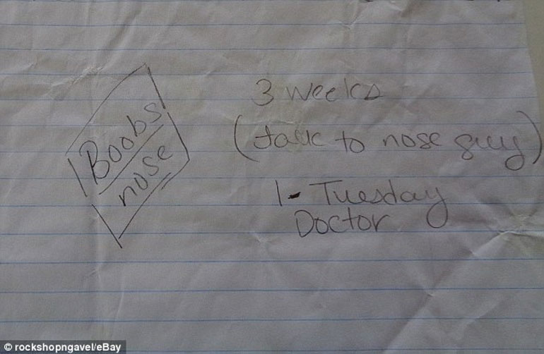 Σε αυτήν αναγράφονται τα ψώνια που θέλει να κάνει στο σουπερμάρκετ, αλλά και τα ραντεβού της με τον πλαστικό χειρουργό για να φτιάξει τη μύτη και το στήθος της. Από τη λίστα κανείς παρατηρεί την αγάπη της τραγουδίστριας στα μπισκότα, αλλά και τα αναψυκτικά.