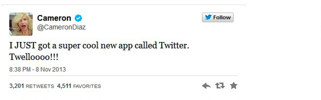 Μπορεί να καθυστέρησε μερικά χρόνια, αλλά η Cameron Diaz εντάχθηκε τελικά στα social media με ένα νέο λογαριασμό στο Twitter την Παρασκευή, τον @CameronDiaz. Φαίνεται πως ζήλεψε από τη Sarah Jessica Parker…