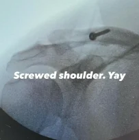 «Βιδωμένος ώμος. Ναι», έγραψε στη λεζάντα της ακτινογραφίας που ακολούθησε, στην οποία φαίνεται μια μεγάλη βίδα που έχει τοποθετηθεί και κρατάει τα οστά του ενωμένα.