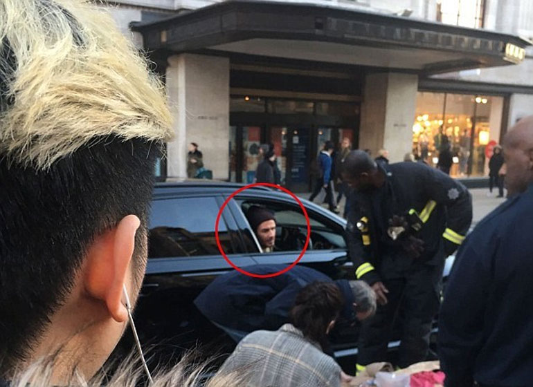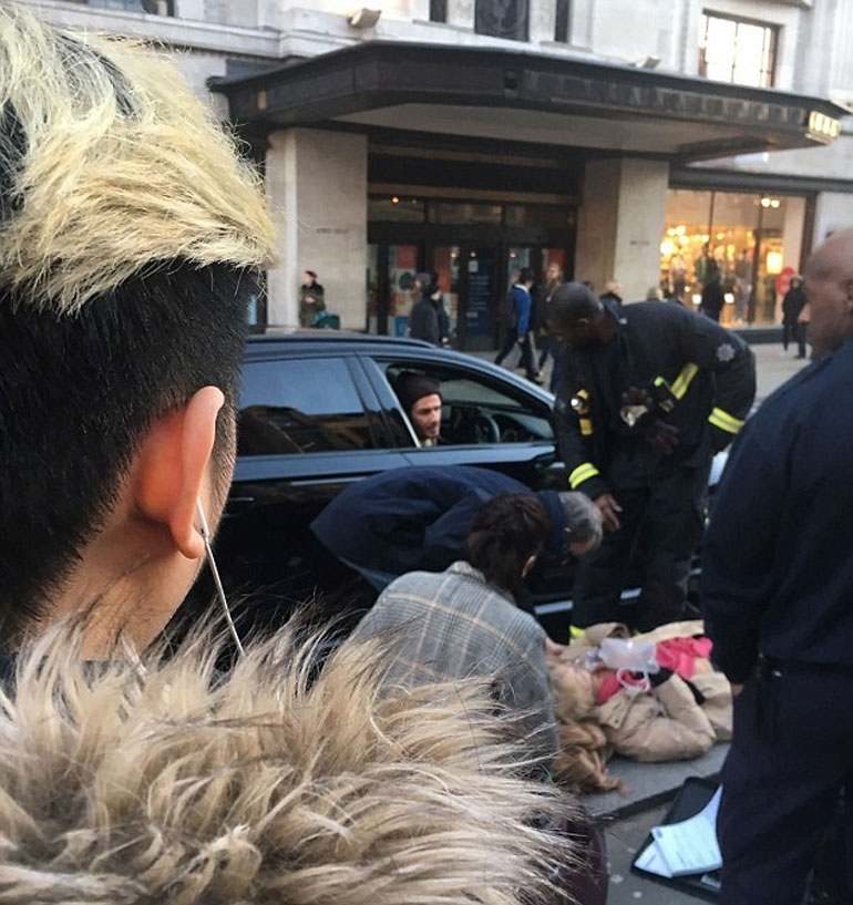 Μαρτυράς ενός δυσάρεστου περιστατικού έγινε ο David Beckham όταν την ώρα που διέσχιζε έναν από του πιο κεντρικούς δρόμους στο Kensington, του δυτικού Λονδίνου, μια ηλικιωμένη γυναίκα έχασε τις αισθήσεις τις με αποτέλεσμα να πέσει στον δρόμο και να τραυματιστεί ελαφρά στο κεφάλι.