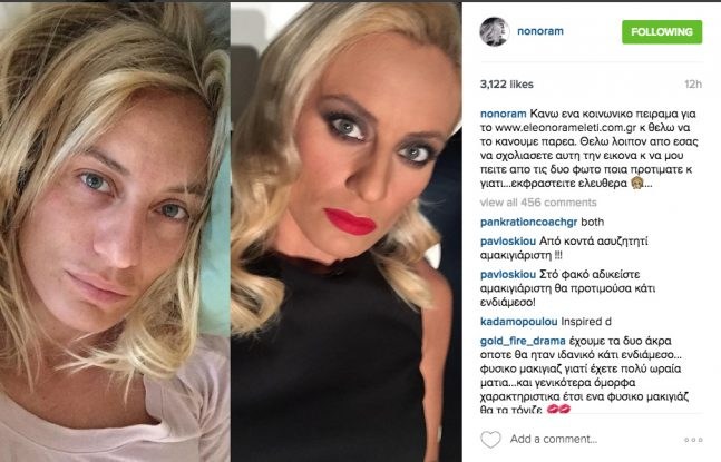 Στην μία φωτογραφία είναι αγουροξυπνημένη και αμακιγιάριστη και στη δεύτερη φουλ μακιγιαρισμένη. Αλήθεια εσείς πώς την προτιμάτε;