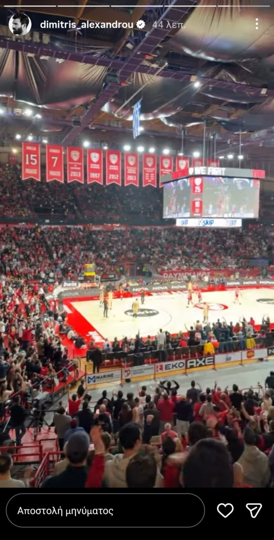 Κοινή έξοδο πραγματοποίησαν ο Δημήτρης Αλεξάνδρου και η Ρία Ελληνίδου, δίνοντας το παρών στον αγώνα μπάσκετ Ολυμπιακός-Μπαρτσελόνα στο ΣΕΦ. Αν και δημοσίευσαν αμφότεροι πλάνα από την ατμόσφαιρα του γηπέδου στα μέσα κοινωνικής δικτύωσης, απέφυγαν να ανεβάσουν μία κοινή φωτογραφία στα social media, διατηρώντας το “μυστήριο” γύρω από τη συνύπαρξή τους.