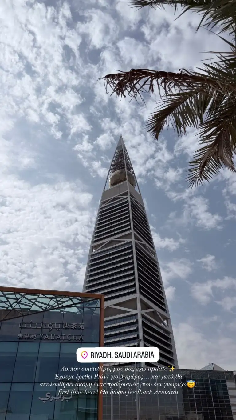 «Λοιπόν συμπεθέρες μου σας έχω update. Έχουμε έρθει Ριάντ για τρεις ημέρες… και μετά θα ακολουθήσει ακόμη ένας προορισμός (που δεν γνωρίζω). Πρώτη φορά εδώ!» έγραψε η Influencer στα Instagram Stories της.