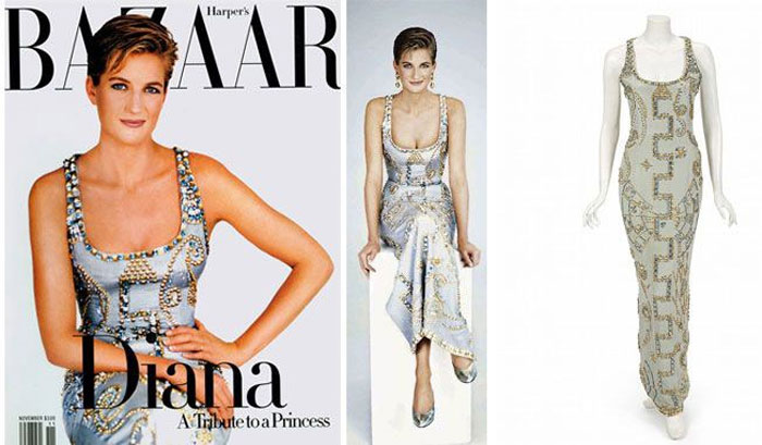 Πρόκειται για τη τουαλέτα που είχε σχεδιάσει ειδικά για εκείνη ο Versace για να τη φορέσει για τις ανάγκες φωτογράφισής της για τον Patrick Demarchelier το 1991, ενώ το 1997 και μετά το θάνατό της έγινε το εξώφυλλο του περιοδικού Harper’s Bazaar.