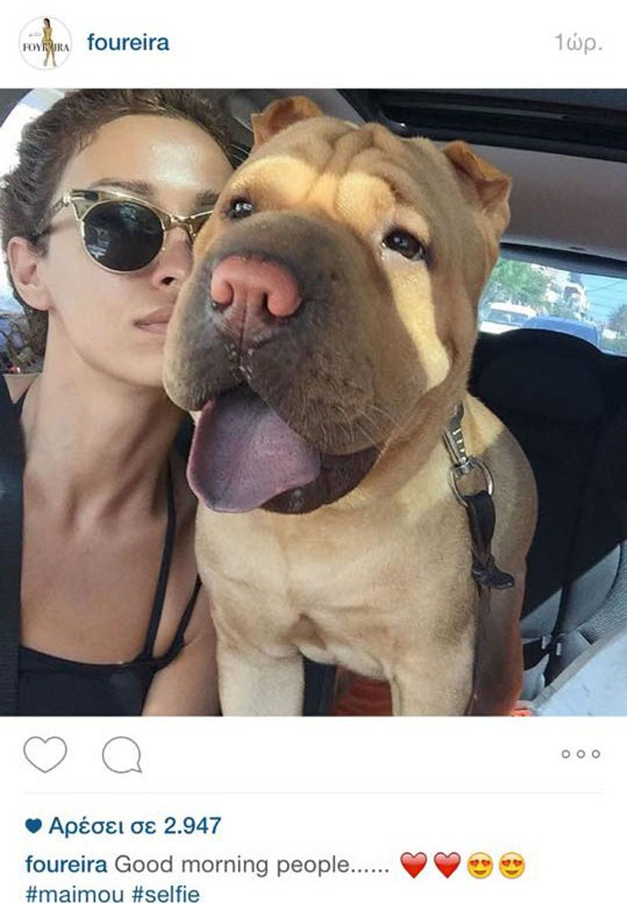 Η σέξι τραγουδίστρια χωρίς ίχνος μακιγιάζ στο πρόσωπό της, φορώντας μόνο τα γυαλιά της, πόζαρε στο φακό με τον αγαπημένο της σκύλο, τη Μαϊμού και έγραψε στη λεζάντα: «Καλημέρα άνθρωποι», βάζοντας δίπλα καρδούλες και δείχνοντας πως παρά τις δύσκολες μέρες που περνάει η χώρα μας εκείνη προσπαθεί να διατηρεί την αισιοδοξία και την καλή της διάθεση.