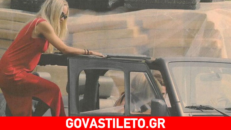 Ο φακός της εφημερίδας απαθανάτισε τη Δούκισσα με μια κόκκινη ολόσωμη φόρμα να επιβιβάζεται στο τζιπ της Έλλης Στάη.