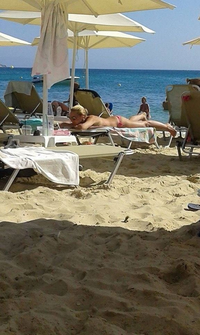 Η Έλενα προκειμένου να αποκτήσει ένα ομοιόμορφο μαύρισμα δεν δίστασε να βγάλει το πάνω μέρος του μαγιό της και φυσικά ο φακός ήταν και εκεί και την απαθανάτισε.