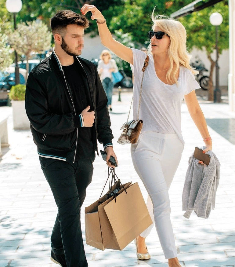 Η παρουσιάστρια του Alpha τον χάιδευε ξεχνώντας πως την ίδια ώρα υπήρχαν φωτογράφοι που την απαθανάτιζαν να κάνει τις αγορές της, κι εκείνος με τη σειρά του, εξοικειωμένος πια με την παρουσία των φωτογράφων στις εξόδους της μητέρας του, την περίμενε υπομονετικά και τη φιλούσε στο κεφάλι.