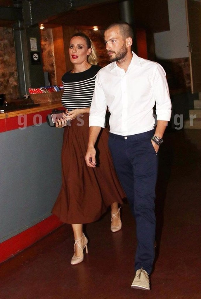 Πριν από λίγες μέρες το ζευγάρι βρέθηκε στην πρεμιέρα της παράστασης «Όταν σβήνουν τα φώτα» στο Θέατρο Πειραιώς 131, όπου και τo απαθανάτισε ο φωτογραφικός φακός του govastileto.gr, με τη γνωστή παρουσιάστρια να φοράει φαρδιά ρούχα, κρύβοντας επιμελώς τη φουσκωμένη της κοιλίτσα.