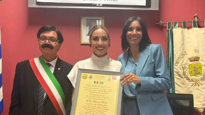 Η Ευρωβουλευτής, Ελεονώρα Μελέτη έλαβε μια ιδιαίτερα τιμητική διάκριση κατά την επίσημη επίσκεψή της στις ελληνόφωνες περιοχές της Καλαβρίας, στην Ιταλία, το τριήμερο 4–6 Ιουλίου, όπου ήταν προσκεκλημένη της Ιταλίδας Ευρωβουλευτή, Τζούσι Πρίντσι.