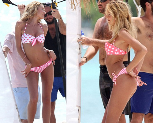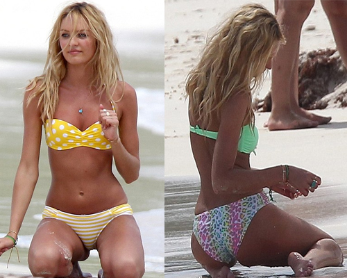 Η Candice Swanepoel βρισκόταν σε μεγάλα κέφια και δε σταματούσε να ποζάρει, ούτε την ώρα των διαλειμμάτων.