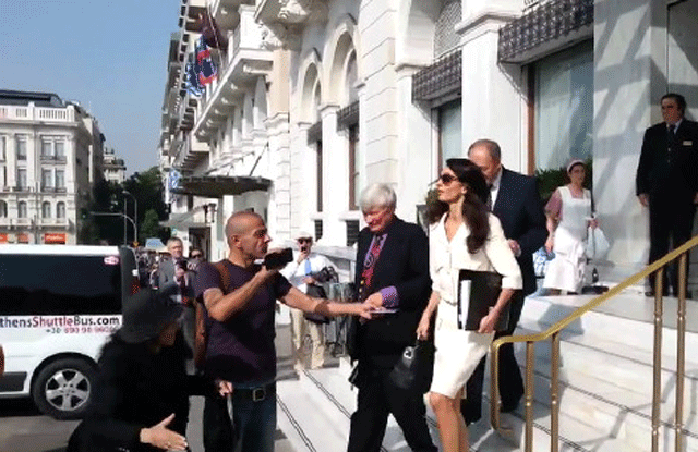 Την κα. Λουκά απομάκρυναν οι άνδρες της προσωπικής ασφάλειας της κυρίας Αλαμουντίν.