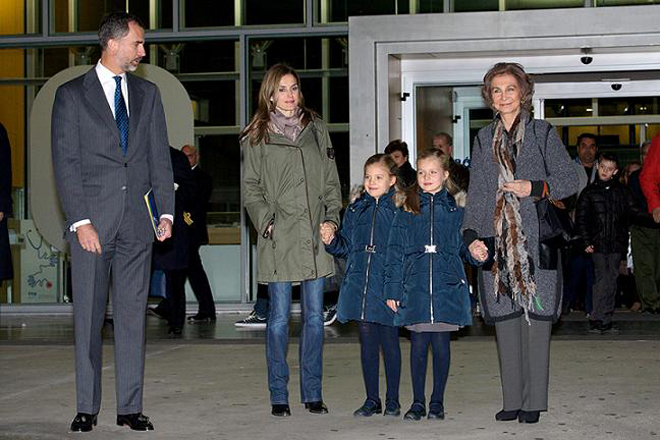 Τα δύο κορίτσια, όπως δείχνουν οι φωτογραφίες του Hello, πήγαν μαζί με τους γονείς τους, την πριγκίπισσα Letizia και τον πρίγκηπα Felipe στο νοσοκομείο Pozuelo de Alarcon, κοντά στη Μαδρίτη, ενώ εκεί ήταν και η γιαγιά τους, βασίλισσα Σοφία.