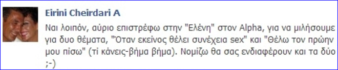 Στον καναπέ της εκπομπής «Ελένη» θα καθίσει σήμερα η Ειρήνη Χειρδάρη, πρώην συνεργάτις της Ελένης Μενεγάκη. Η Ειρήνη θα βρεθεί ως καλεσμένη...