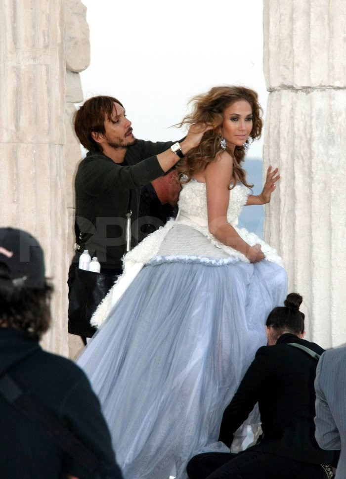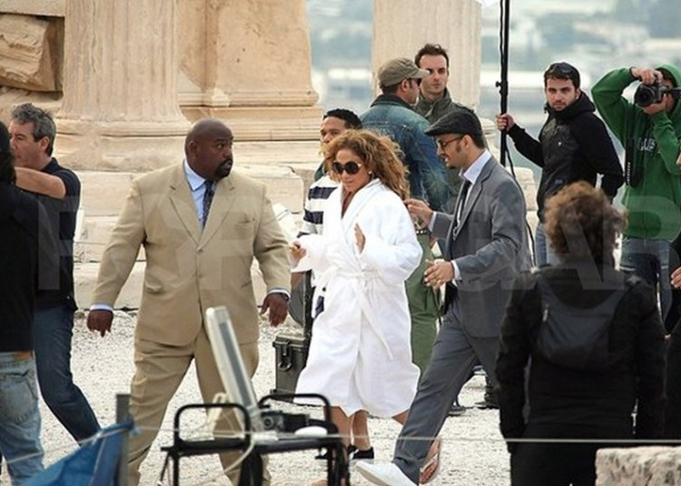 Φορώντας ένα γαλάζιο φόρεμα και έχοντας αφήσει τα μαλλιά της ελεύθερα, η JLo φωτογραφήθηκε στο Ερέχθειο, στη βόρεια πλευρά της Ακρόπολης.