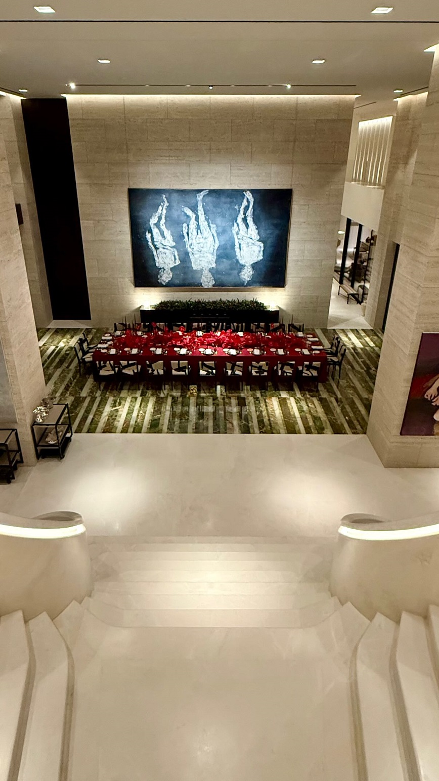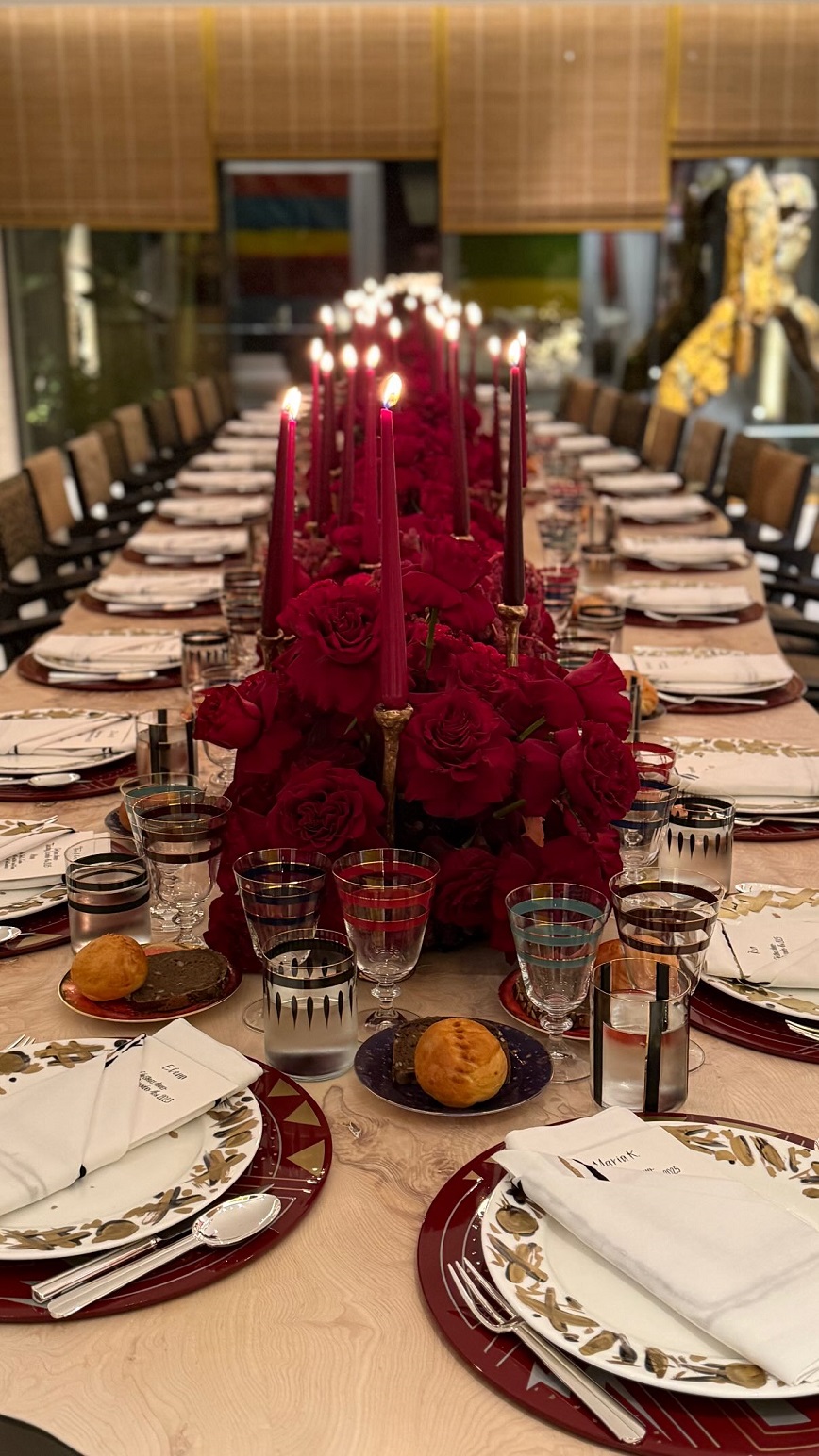 Τον συγκλονιστικό στολισμό του με λουλούδια σε χρώμα ρουμπινιού που επιμελήθηκε ο Jeff Leatham, ο Αμερικανός designer που εξειδικεύεται σε floral design παγκοσμίως και έχει τιμηθεί με το Μετάλλιο του Chevalier de la Legion d’Honneur από την Γαλλική Κυβέρνηση.