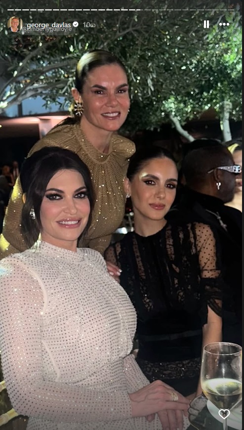 Κατά τη διάρκεια της βραδιάς μάλιστα ο Γιώργος Ντάβλας, ο οποίος είναι γνωστό ότι έχει καλή φωνή, δεν δίστασε να πάρει το μικρόφωνο και να αφιερώσει ένα τραγούδι στην Κίμπερλι Γκίλφοϊλ με εκείνη να το απολαμβάνει.