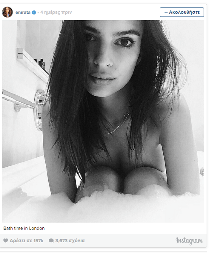 Ο μήνας τελείωσε ιδανικά για τους φαν της Emily Ratajkowski. Ανέβασε γυμνή φωτογραφία στην μπανιέρα της και αναστάτωσε τον κόσμο του Instagram και όχι μόνο!