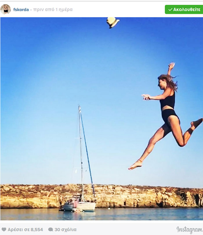 Αυτή τη φορά η παρουσιάστρια ανέβασε στον λογαριασμό της στο instagram μία εντυπωσιακή φωτογραφία, όπου τη βλέπουμε να κάνει βουτιά από ψηλά, κατά τη διάρκεια κάποιας εξόρμησής της με το σκάφος κι έγραψε στη λεζάντα: «Για πάντα παιδί».