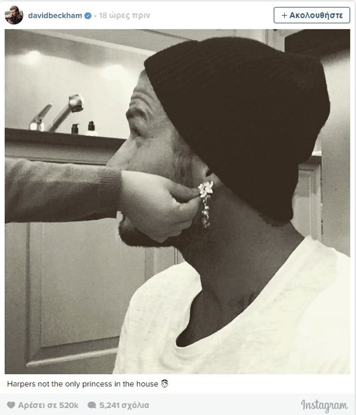 Όπως βλέπετε, ανέβασε την παρακάτω φωτογραφία στην οποία η 3χρονη Harper κρεμάει στο αυτί του ένα από τα… σκουλαρίκια της, με τον ίδιο να σχολιάζει με χιούμορ στην λεζάντα: