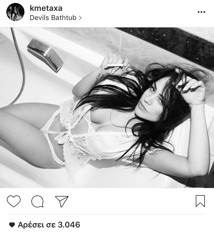 Αυτήν τη φορά η κόρη του Λευτέρη Πανταζή μπήκε στην μπανιέρα της φορώντας μόνο ένα δαντελένιο baby doll και κρατώντας ένα τσιγάρο στο χέρι. Όπως ήταν φυσικό, η εν λόγω ανάρτηση συγκέντρωσε πολλά like και κολακευτικά σχόλια από τους άνδρες fans της.